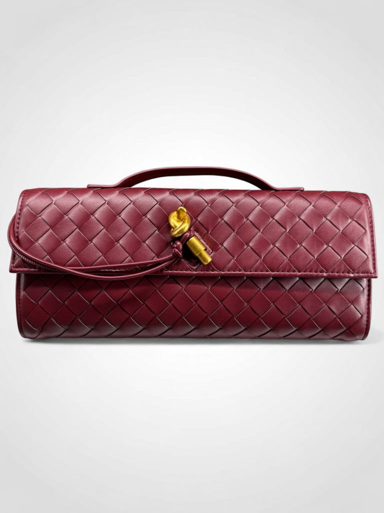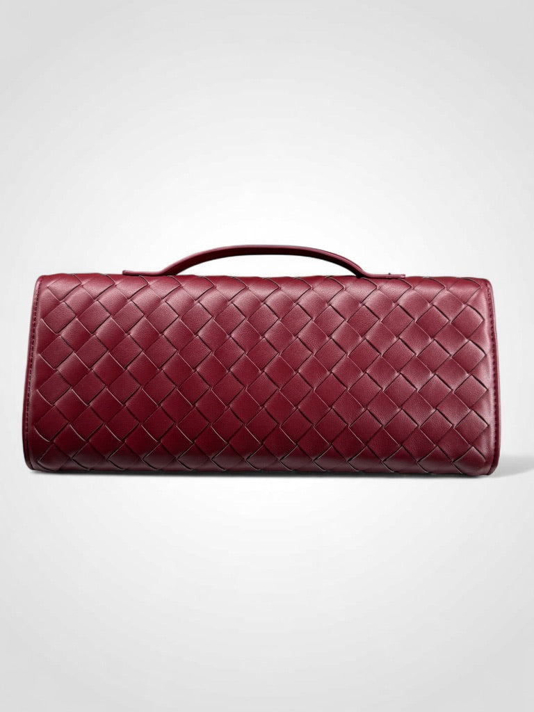 Dressed in Merlot, I bring the richness of aged wine with the energy of a red-carpet moment. My handwoven silhouette in premium vegan leather is elegance with an edge—soft to the touch yet structured enough to hold your secrets (and your lipstick).
