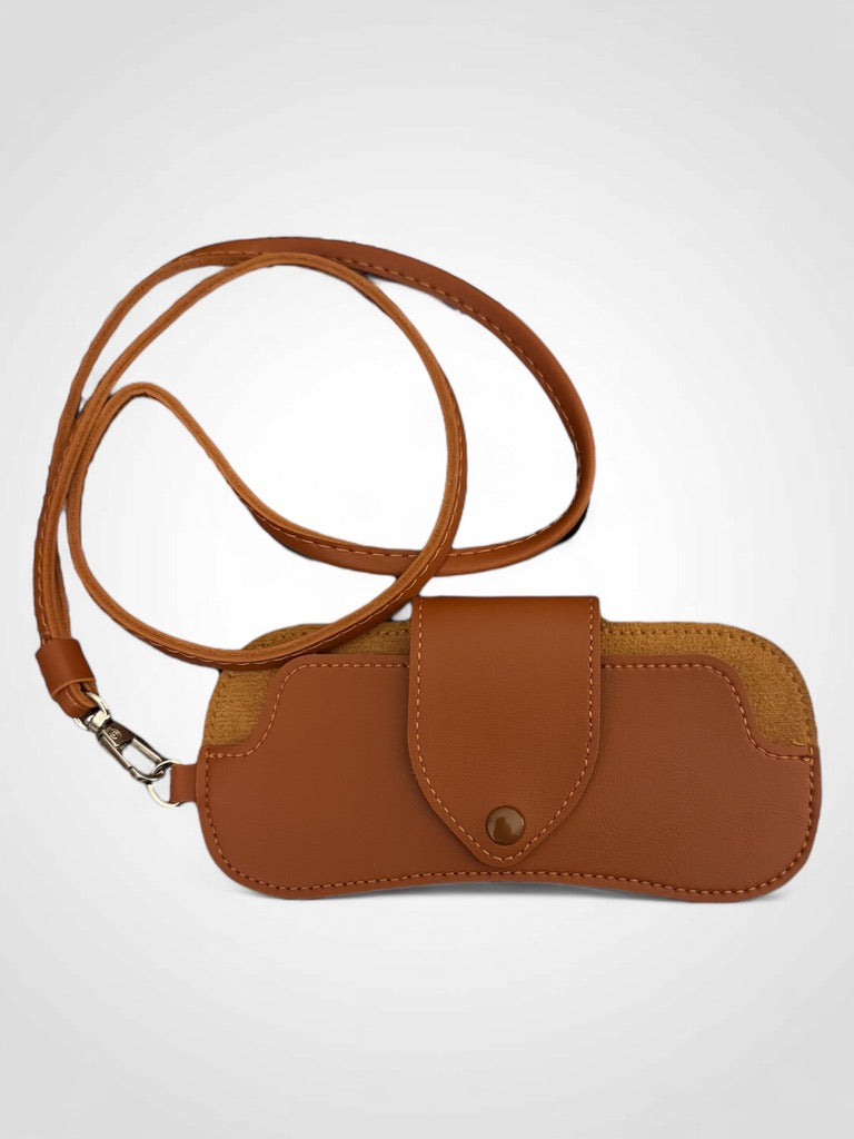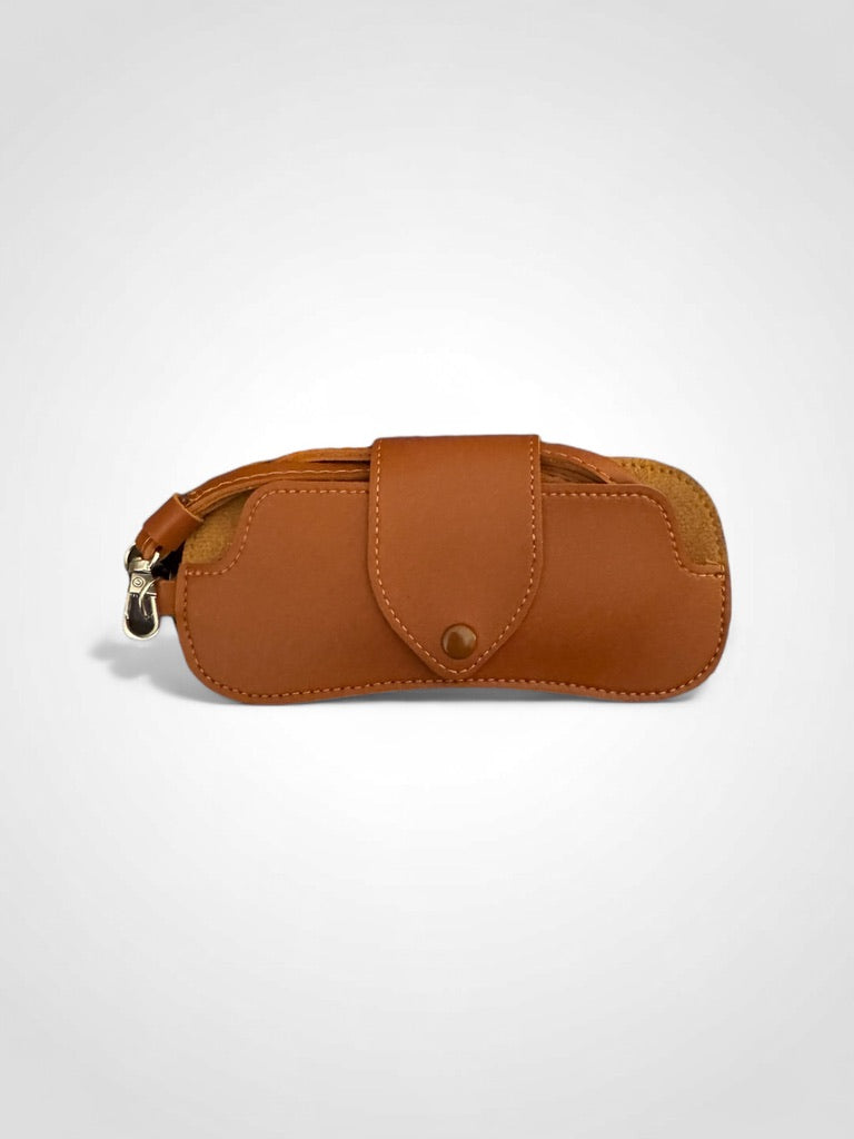 Built from premium genuine leather that’s soft enough to flex but structured enough to hold it together (just like you on a Monday morning), I’m here to protect your shades in style. My suede-lined interior keeps those lenses scratch-free and snug, while my sleek leather strap lets you wear me crossbody or around your wrist—because why should practicality look boring?