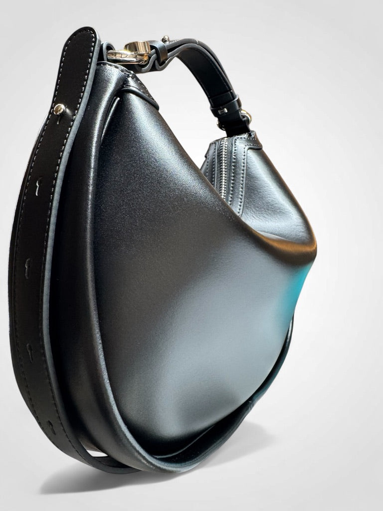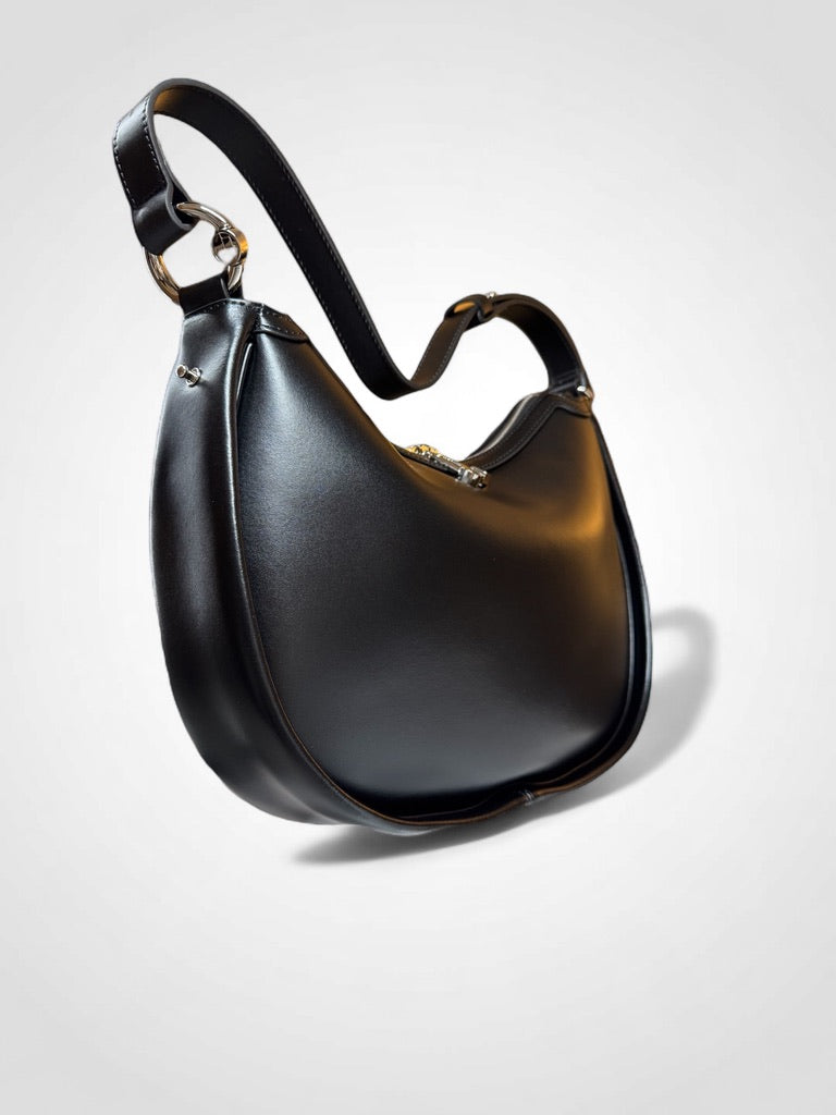In Carbon, I’m the kind of classic that speaks volumes in silence—sleek, striking, and effortlessly refined. I’m crafted from genuine premium leather—luxuriously smooth and made to last. My silver hardware brings just a hint of shine, elegant and effortless.