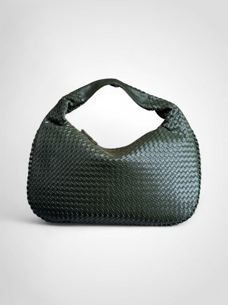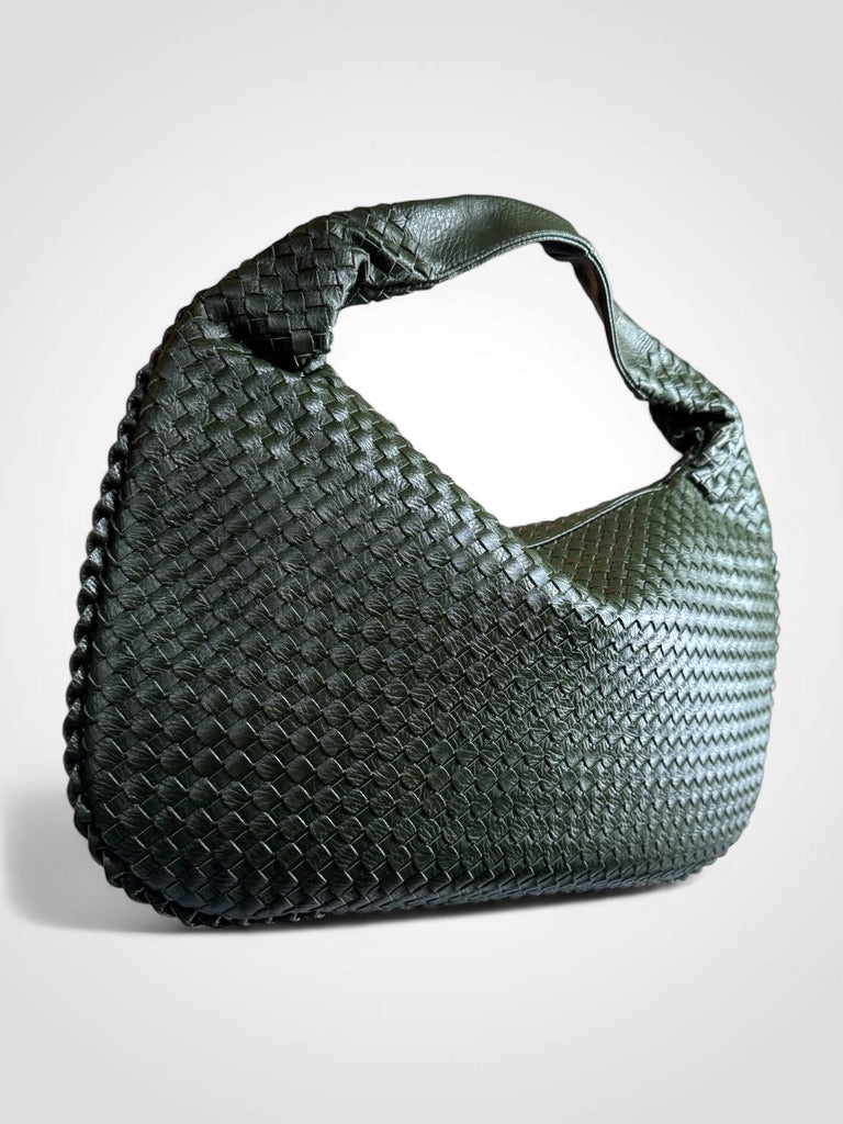 I come in Maison Moss—a rich, earthy green with deep undertones that feel grounded yet effortlessly chic. Like forest shadows at golden hour, I bring calm confidence to any look, day or night. With a soft, sculpted silhouette and a bold woven finish, I’m that rare combo of comfy and collected.