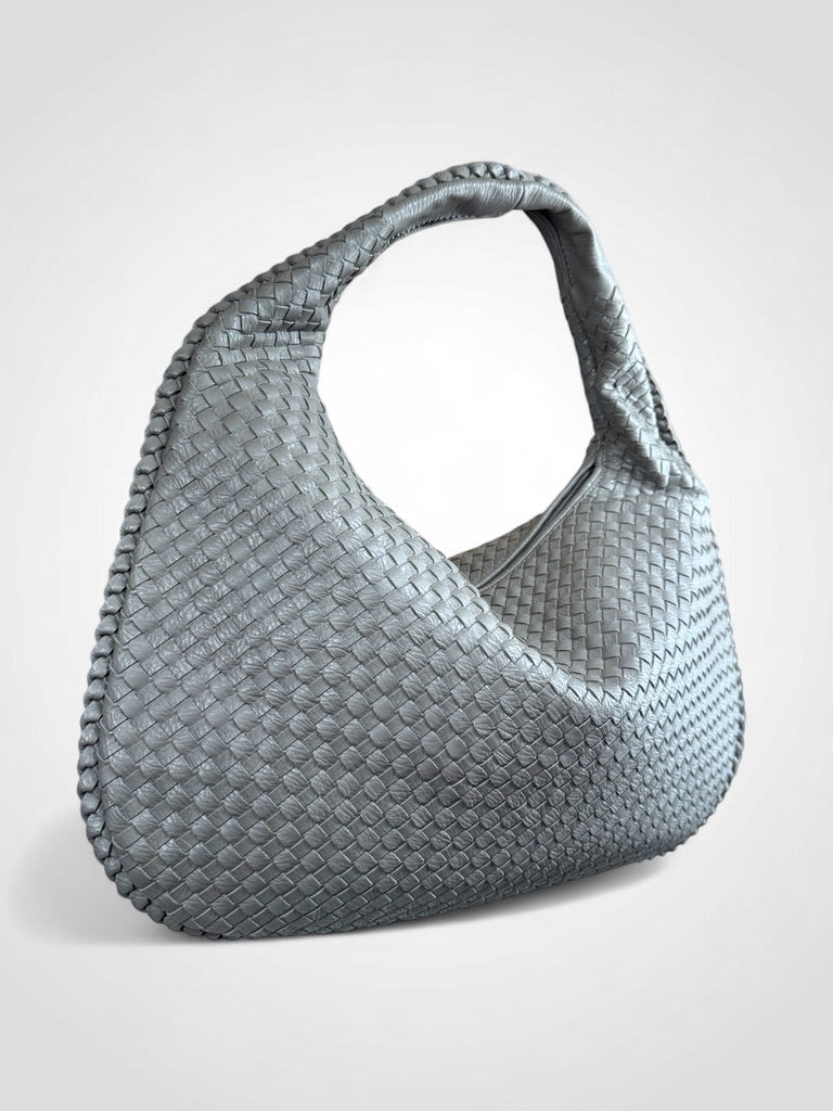 I come in Smoke—a light grey with just the right edge. Cool, composed, and effortlessly modern, I’m here to hold your essentials, your extras, and your just-in-case’s. With a soft, sculpted silhouette and a bold woven finish, I’m that rare combo of comfy and collected.