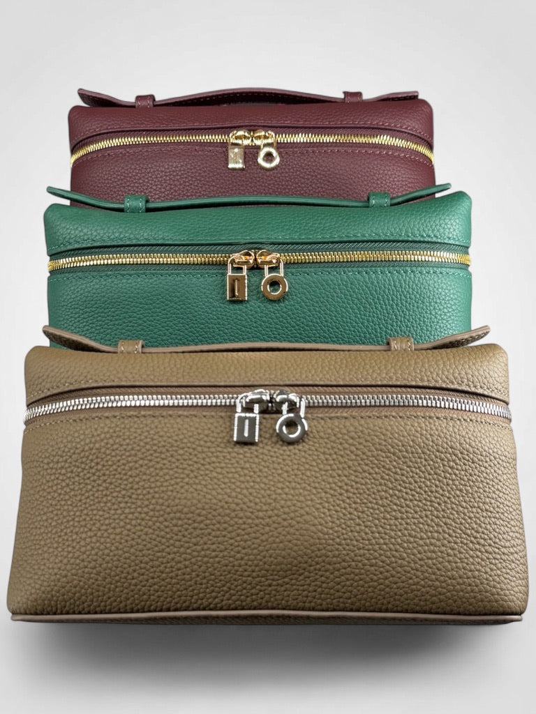 I'm crafted from premium leather, with a smooth leather interior—built to last through your wildest days and most glamorous nights. My silver hardware adds a cool, polished gleam, catching just enough light to be noticed.